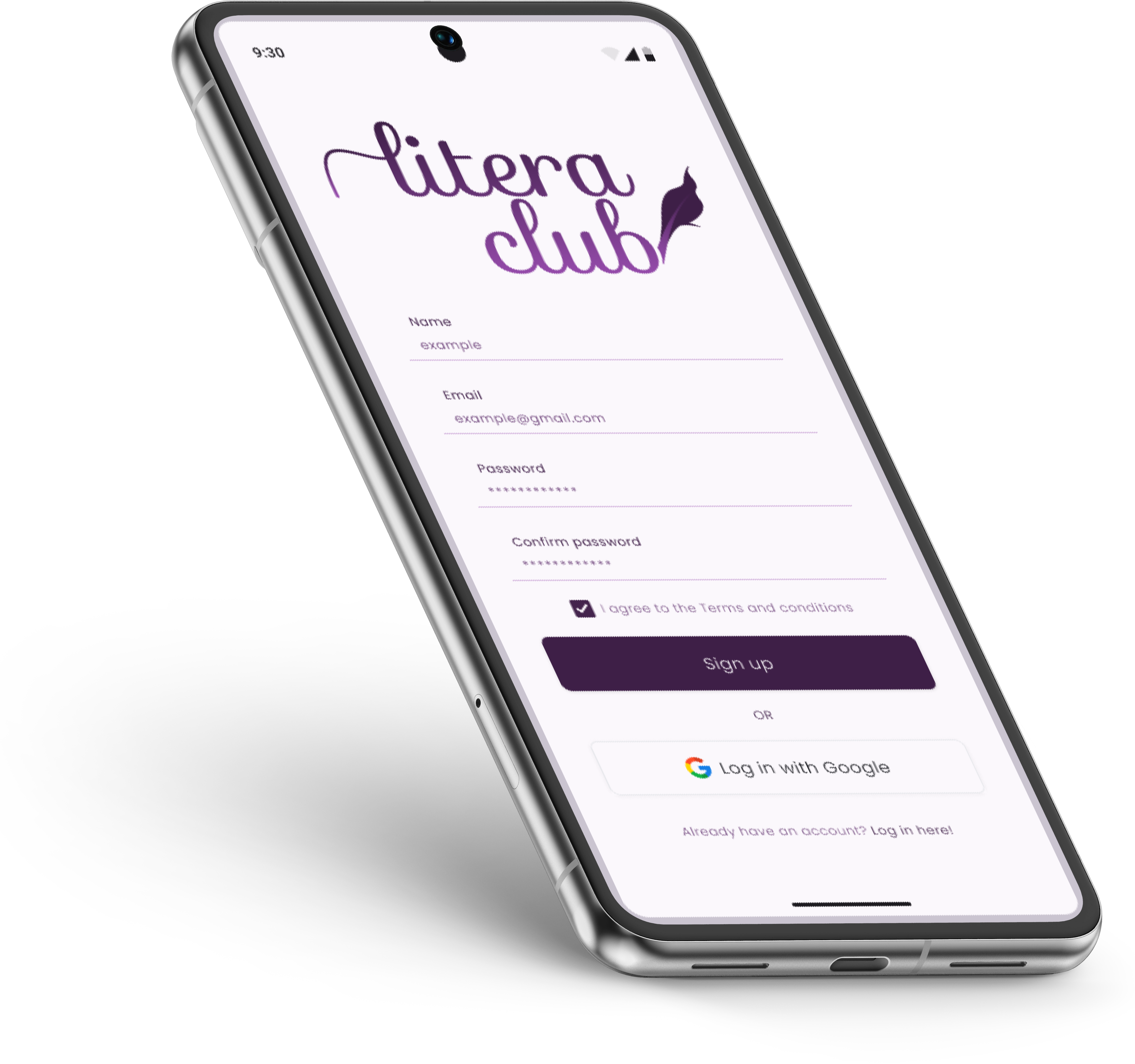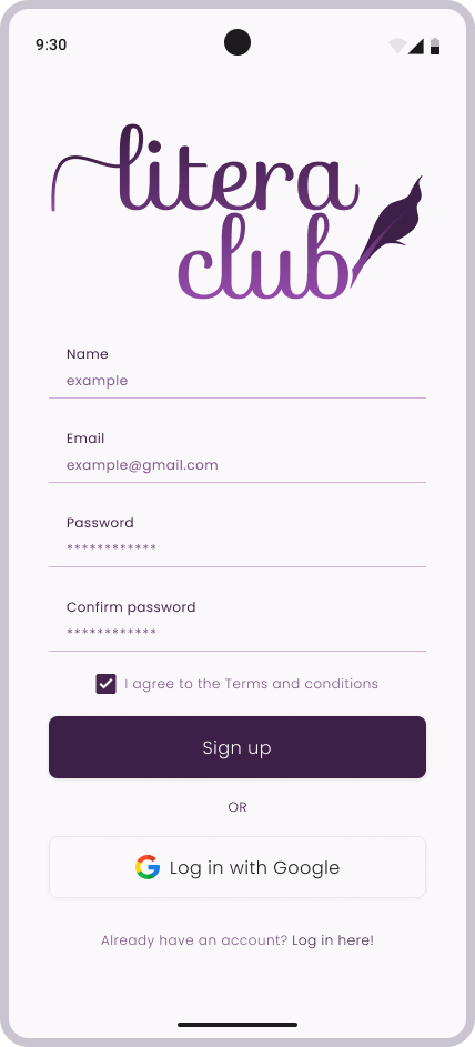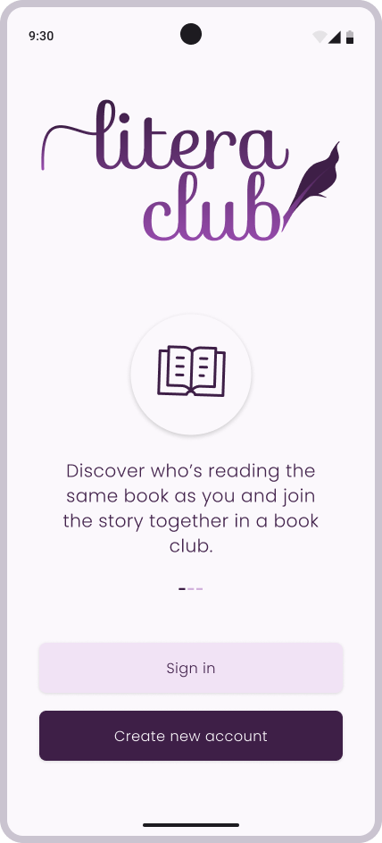 O LiteraClub nasceu como parte do desafio Daily UI 001, onde foram desenvolvidas apenas duas telas iniciais: a tela de cadastro e a primeira tela de apresentação do aplicativo.